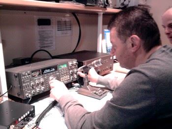Olivier F4FLF règle l’émetteur sous l’œil attentif de Didier F4DFR, le capitaine de l’équipe Michel F6GPU au micro et Nicolas F4GGP à la saisie des contacts effectués.