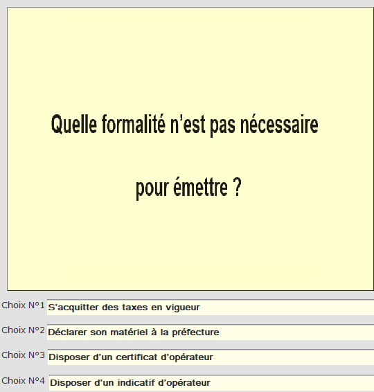 De plus, pendant le confinement, l’ANFR a étoffé sa base de données avec de nouvelles questions de réglementation qui ont perturbé un grand nombre de candidats puisque les sujets abordés étaient inconnus jusqu’à présent. Ainsi, nous avons vu passer des questions comme celles-ci :