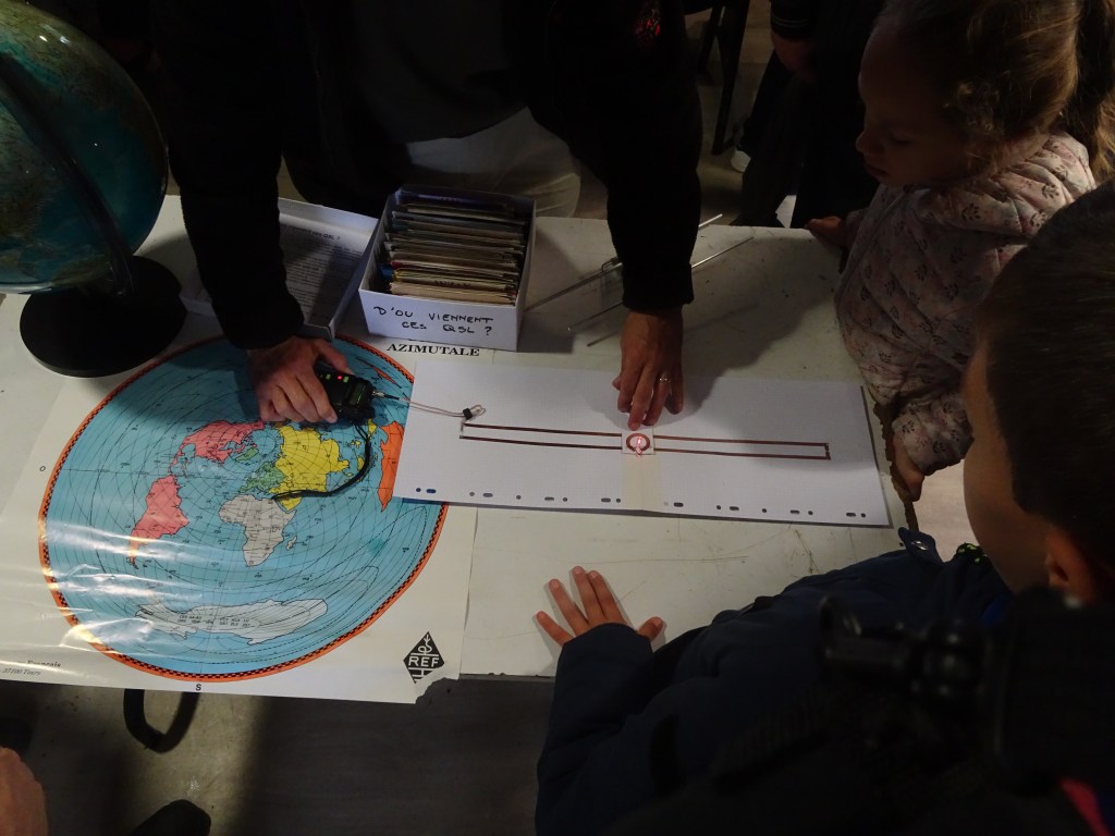 D’autres activités étaient également proposées (présentation de la chasse à la radio-sonde, récepteur SDR avec clé RTL-SDR et GNU Radio, jeu-devinette « D’ou viennent ces QSL ? », collection des postes anciens, …) pour retenir l’attention des petits et des grands.