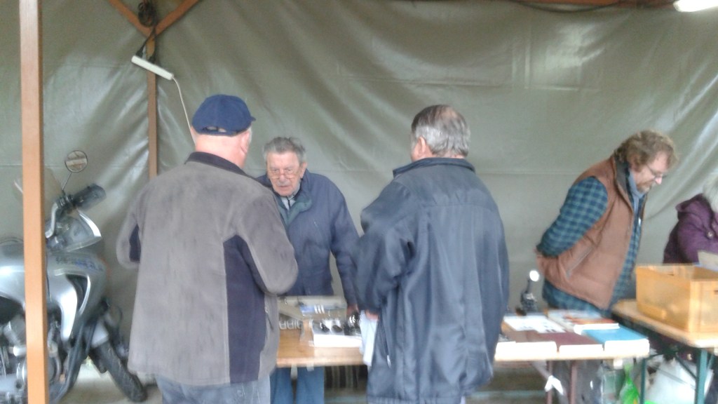 Pendant la brocante, il y eut des retrouvailles entre amis, du matériel qui a changé de propriétaire et des discussions autour de notre passion commune. A la fin de cette matinée, après le rangement dans les voitures du matériel d’exposition ou acquis, un trentaine d’exposants et de visiteurs ont continué leurs conversations animées pendant un repas pris en commun au restaurant « Le Martin Pêcheur » à deux pas du lieu de la brocante.