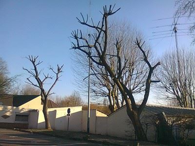 Profitant du beau soleil printanier, Mario F5BDK et Jean Luc F6GPX se sont retrouvés au radio-club le mercredi 19 mars pour procéder à l’élagage de l’arbre qui gênait au mouvement de nos antennes satellite. La Mairie avait bien fait élaguer une partie des branches au-dessus du toit du restaurant mais pas la grosse branche du côté de nos antennes…
