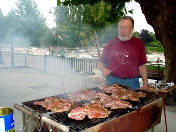 Au menu : épaule d’agneau grillée au barbecue. Bernard, notre maître grilladin, était aussi rouge que son T-shirt; allez savoir pourquoi