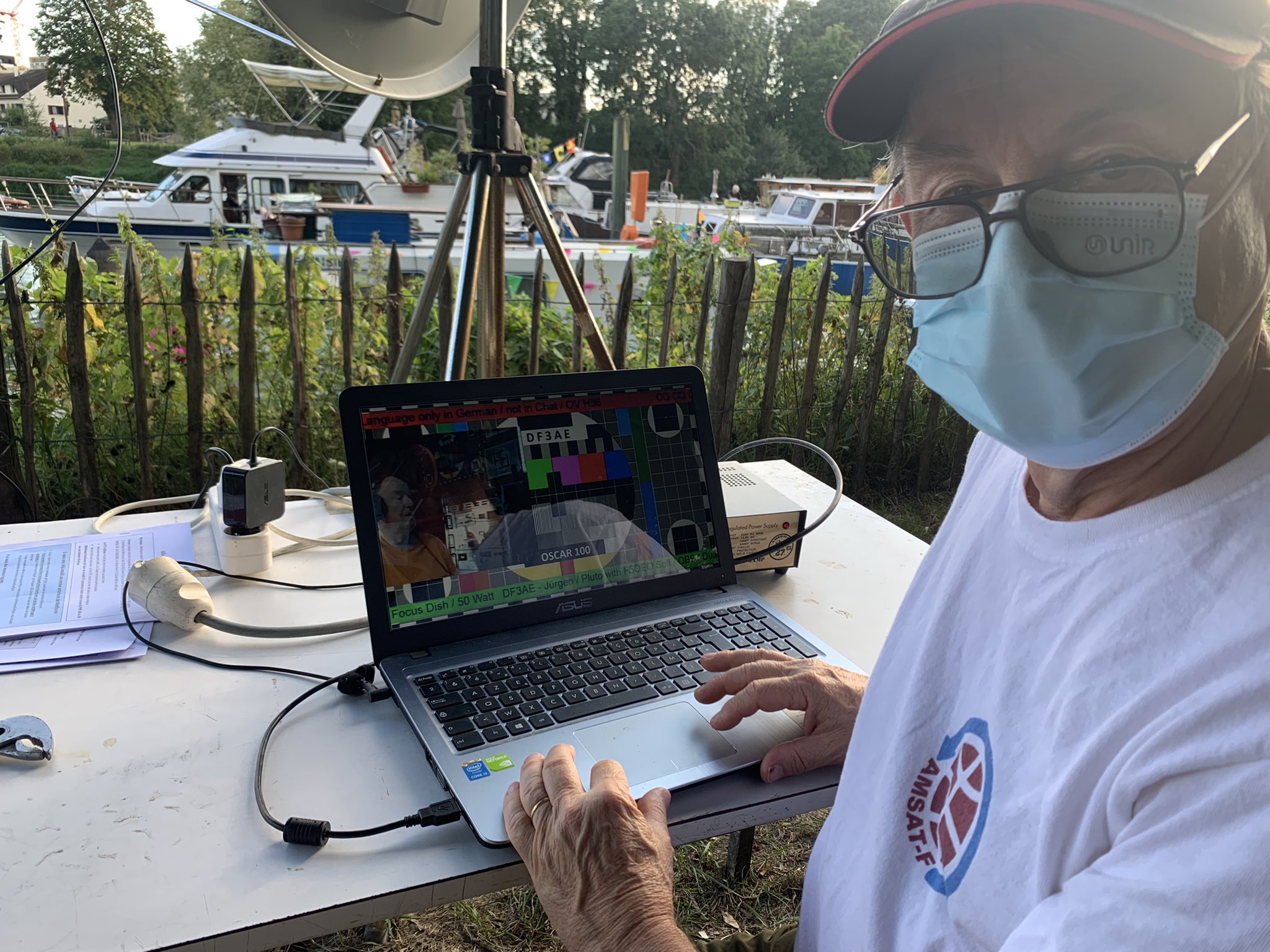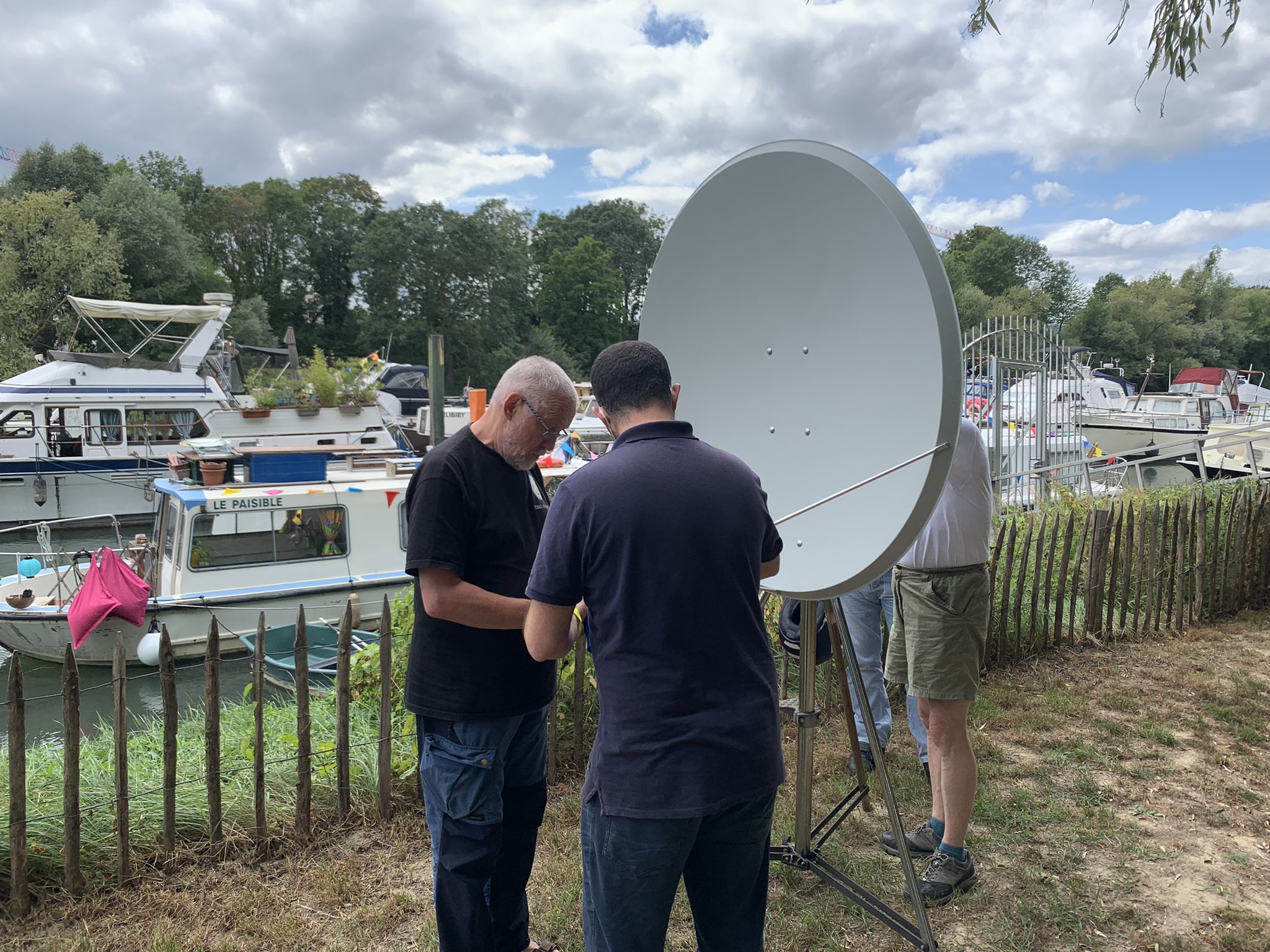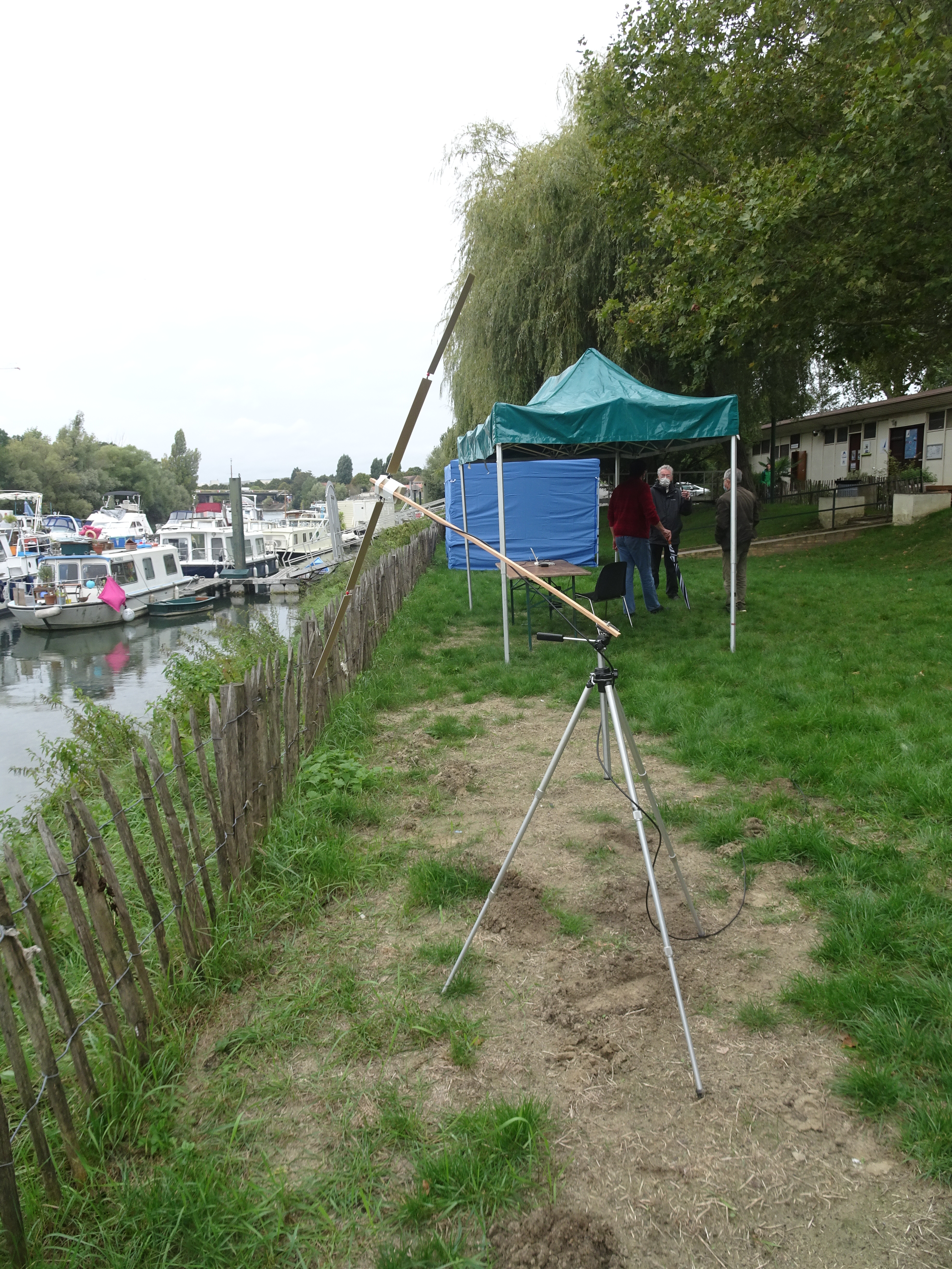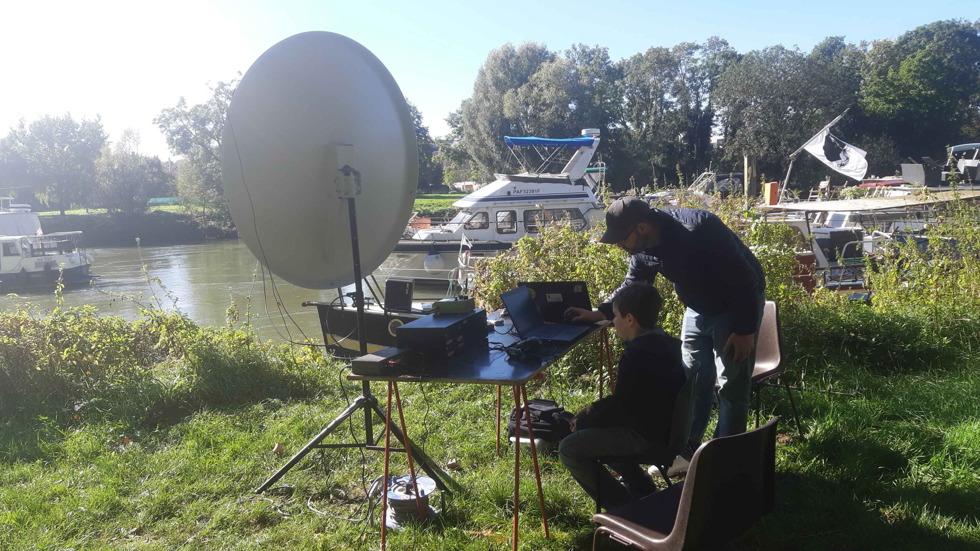Images transmises par RS40S Et, puisqu’il faut faire courir les enfants et les ado, nous avons organisé, entre deux averses, un jeu de géocaching avec des PMR446 où les jeunes devaient chercher des messages disposés à proximité du radio-club grâce aux indications des pilotes qui détenaient les emplacements sur une carte