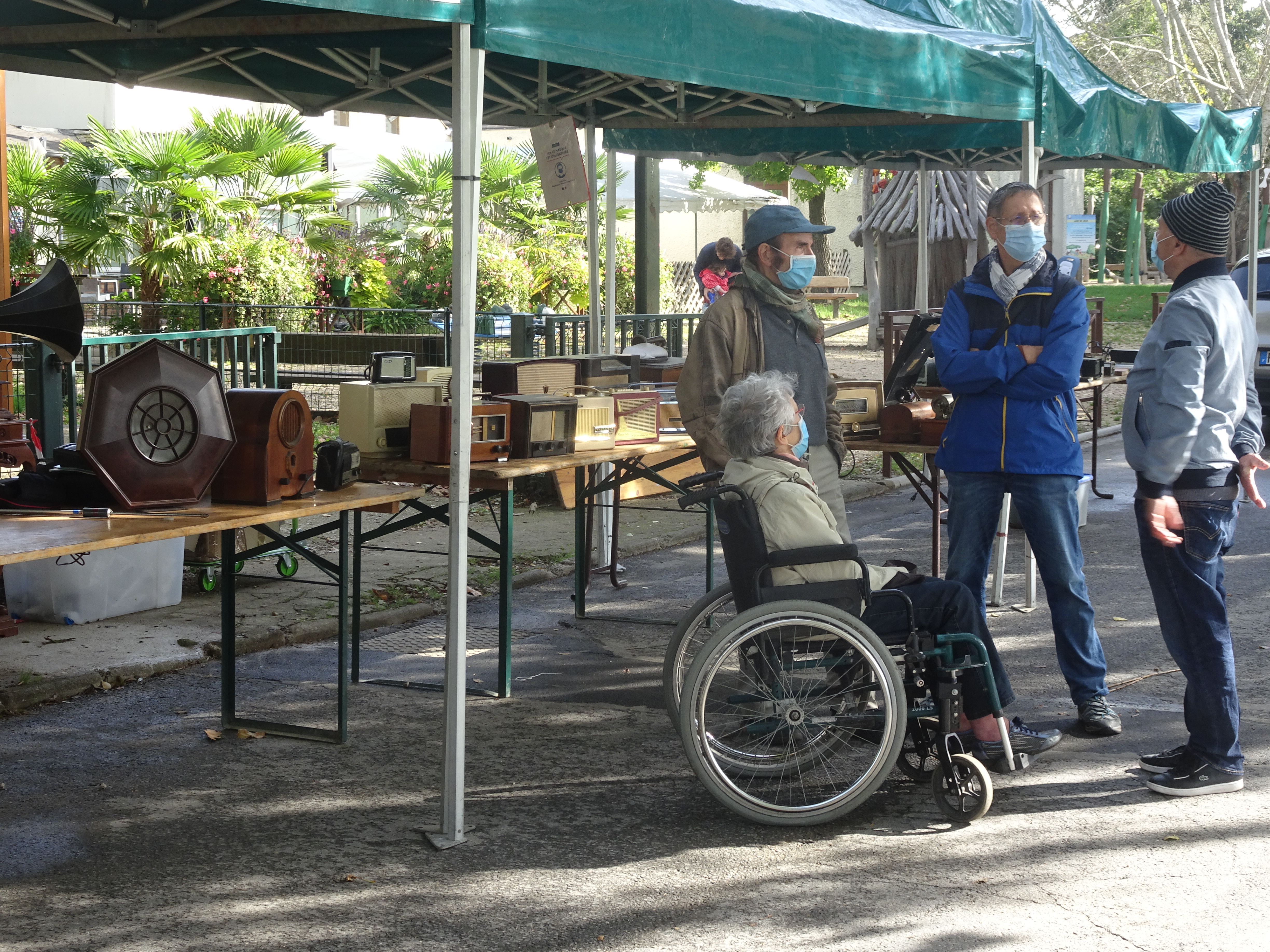 7 stands se sont partagés les 14 tables mises à disposition par la Mairie que nous remercions une nouvelle fois pour son aide précieuse. Outre les copains du radio-club qui assuraient la logistique, nous avons reçu la visite de nombreux OM et SWL de la région. De même, la parution de l’annonce de cette manifestation dans le journal municipal et sur le site Internet de la Ville de Neuilly sur Marne a amené quelques curieux auxquels nous avons fait visiter le local du radio-club et expliqué en quoi consiste notre activité et le rapport entre le radioamateurisme et les membres de Radiofil, collectionneurs-restaurateurs de matériels radio et audio anciens. Les exposants et les visiteurs semblaient être satisfaits des affaires qu’ils avaient faites et de l’ambiance. En résumé, une matinée bien agréable pour tout le monde qui s’est conclue par un repas pris en commun : une vingtaine de convives, exposants et visiteurs, ont continué leurs discussions au soleil de la terrasse du restaurant du Martin Pêcheur, à deux pas du lieu de la brocante.
