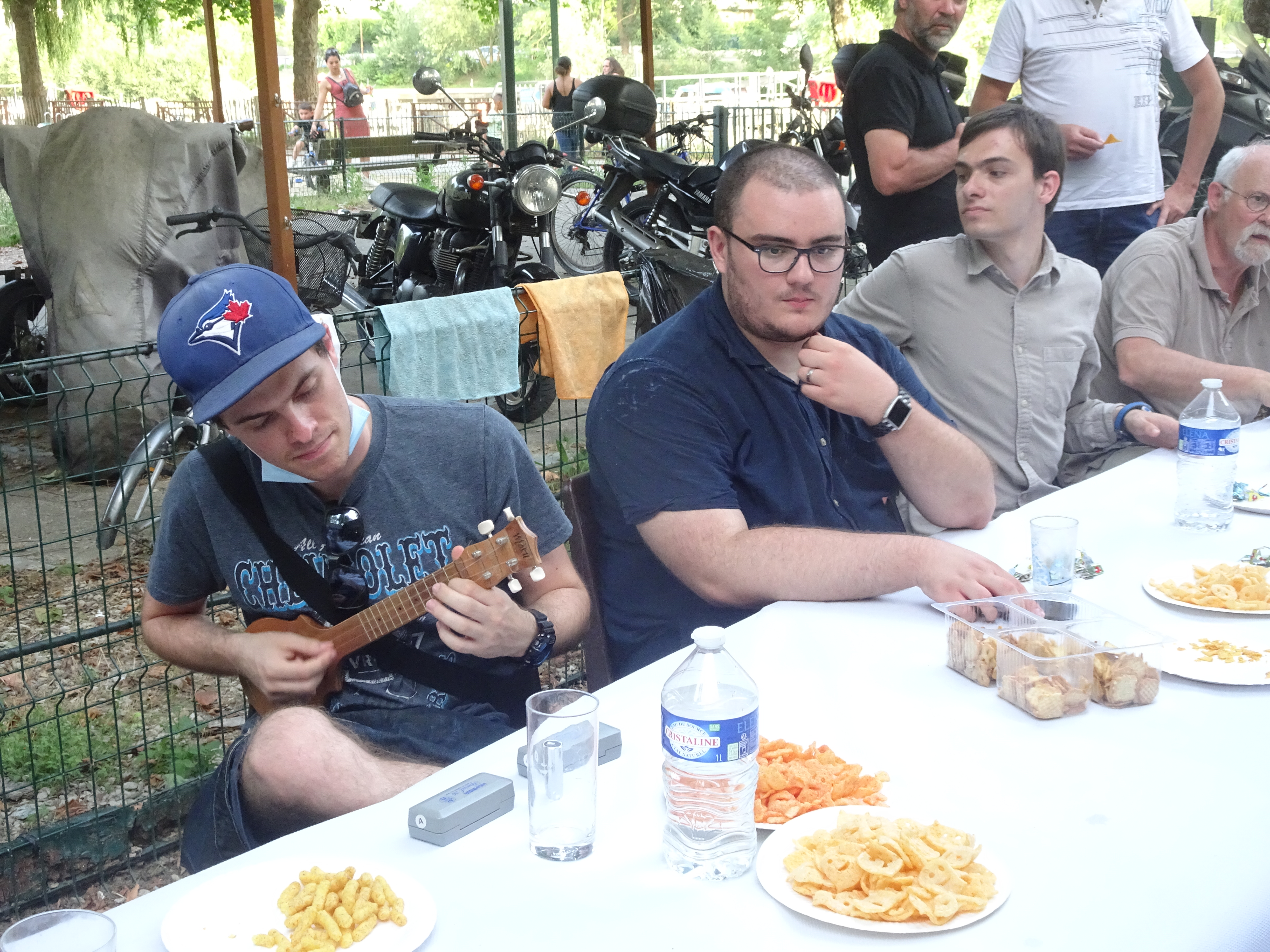 Jules F4IEY et Michel F6GPU avaient apporté leurs instruments de musique (guitares et harmonicas) et ont mis de l’ambiance toute la soirée…