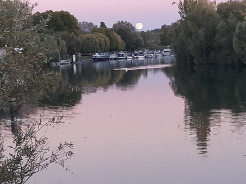 La pile de Volta (Zinc / Cuivre) générait 4 volts (1 volt par élément) et permettait d’éclairer (faiblement !) une LED rouge A la fin de cette journée bien remplie, nous avons profité d’un beau lever de Lune sur le Port de Plaisance de Neuilly sur Marne (il était trop tard pour prévoir une activité EME…)