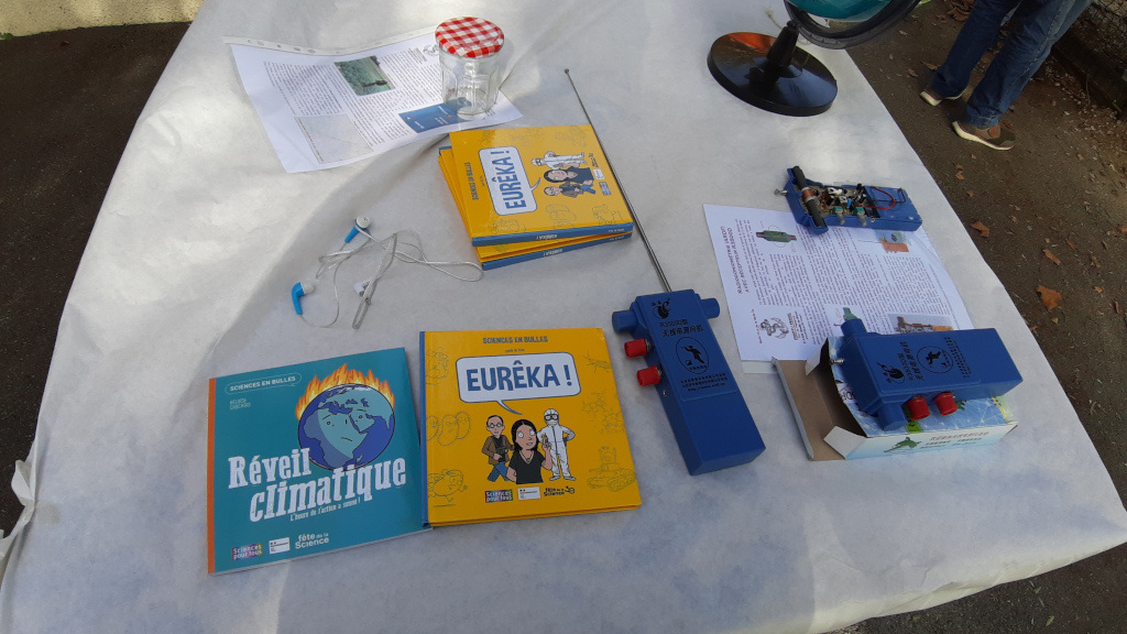 Nous avons profité également de l’occasion pour faire la promotion de la Fête de la Science à laquelle nous participerons les samedis 4 et 11 octobre depuis notre local. Nous avons également pris contact avec des enseignants en école primaire (CM1 et CM2) qui souhaitent participer à la Fête de la Science avec leurs classes et ont d’ores et déjà réservé des créneaux en semaine (un peu de travail en perspective pour les retraités du radio-club !)