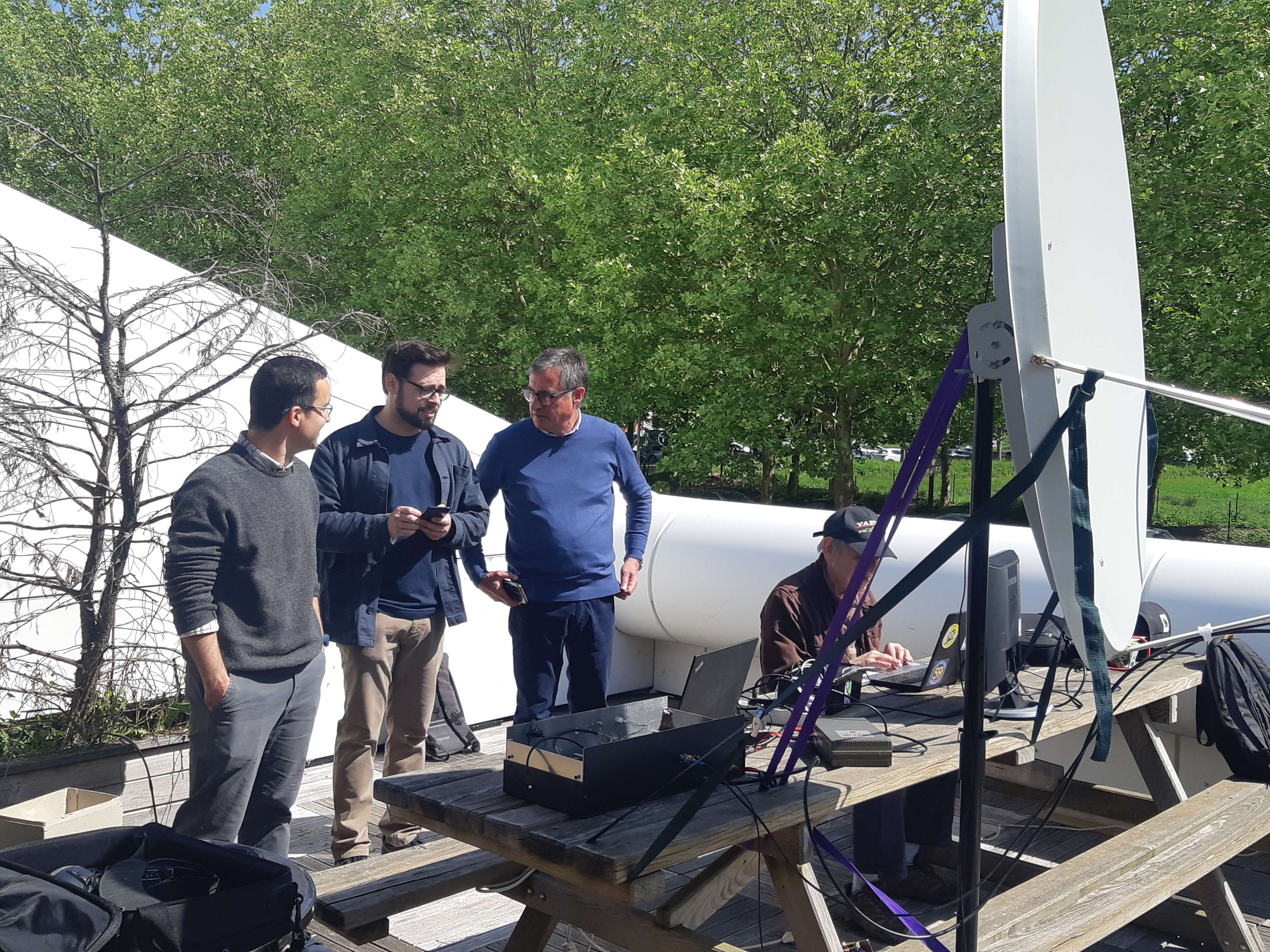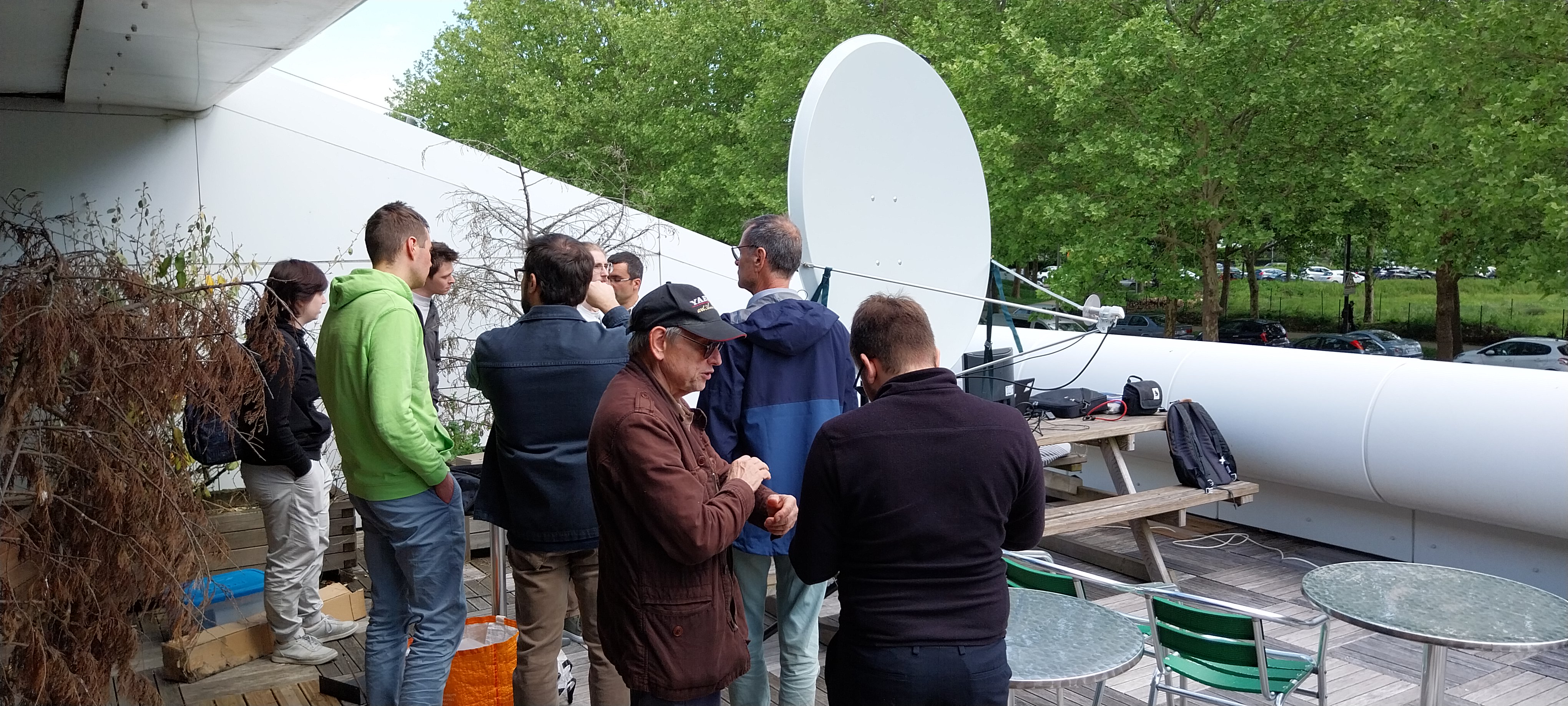 - 11h-14h sur la terrasse de la cafétaria : démonstrations de liaisons via satellite géostationnaire (à 36000 km), exposition d’une maquette de CubeSatSim typique des orbites LEO et décodage d’images de satellite météo.