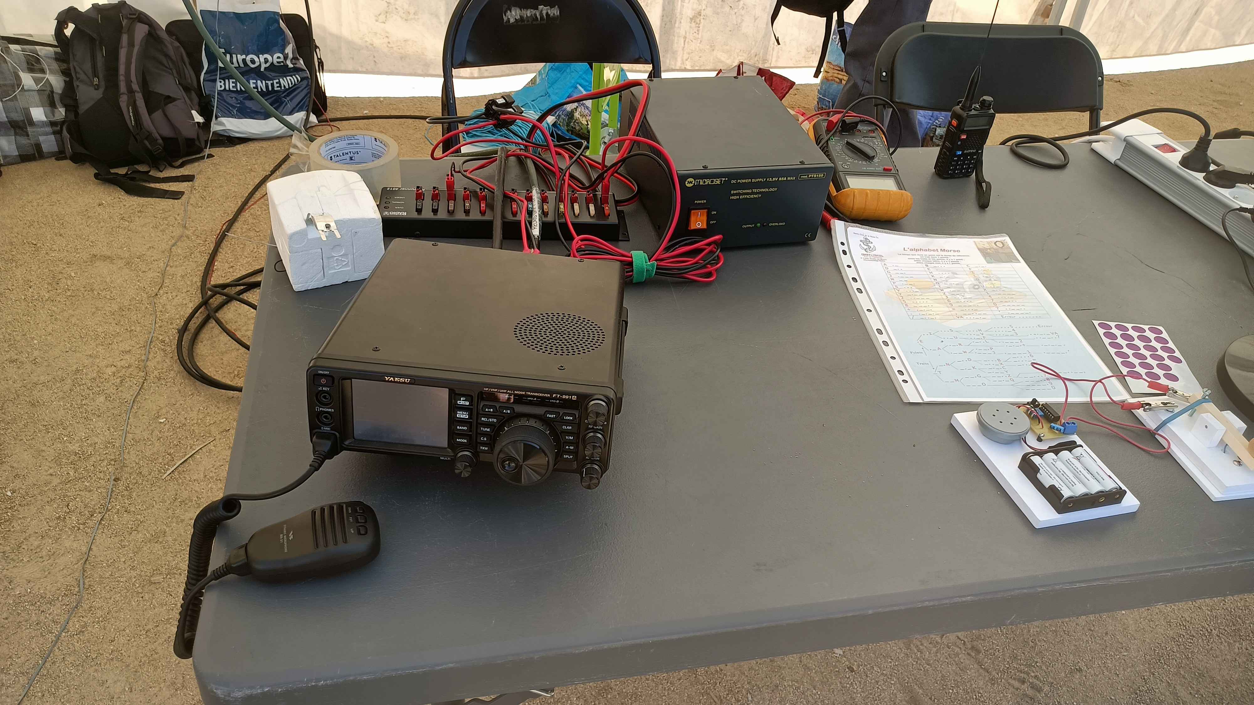 Après quelques frayeurs au sujet de la météo et de l’intendance (la Municipalité avait réquisitionné toutes les tables et les bancs pour le Feu de la Saint Jean organisé le lendemain), nous avons pu nous installer comme d’habitude devant le radio-club.