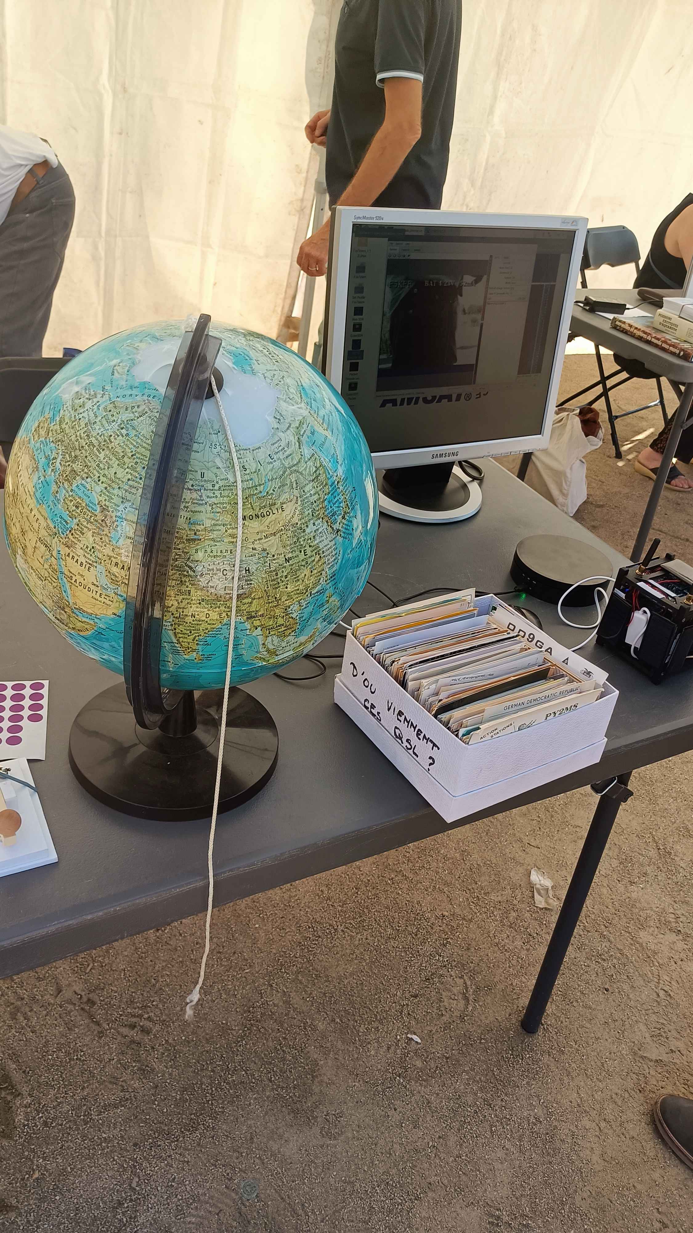 - jeu « d’où viennent ces QSL ? » où il faut montrer sur le globe le pays contacté