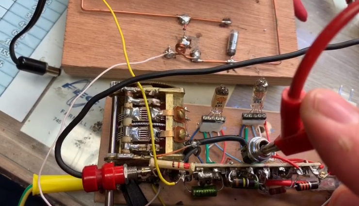 Détail de la platine RF avec les deux tubes subminiatures Je vous rappelle que le radio-club est ouvert tous les samedis pour des séances de bricolages. A titre d’exemple, Andrea apprend tous les jours et nous surprend. Il vient de terminer la réparation de son récepteur Grunding Satellit 3400 vieux de 30 ans. Il y avait plusieurs pannes (notamment 2 chimiques secs sur le PA) mais Andrea est tenace et ça paye. Bravo !