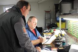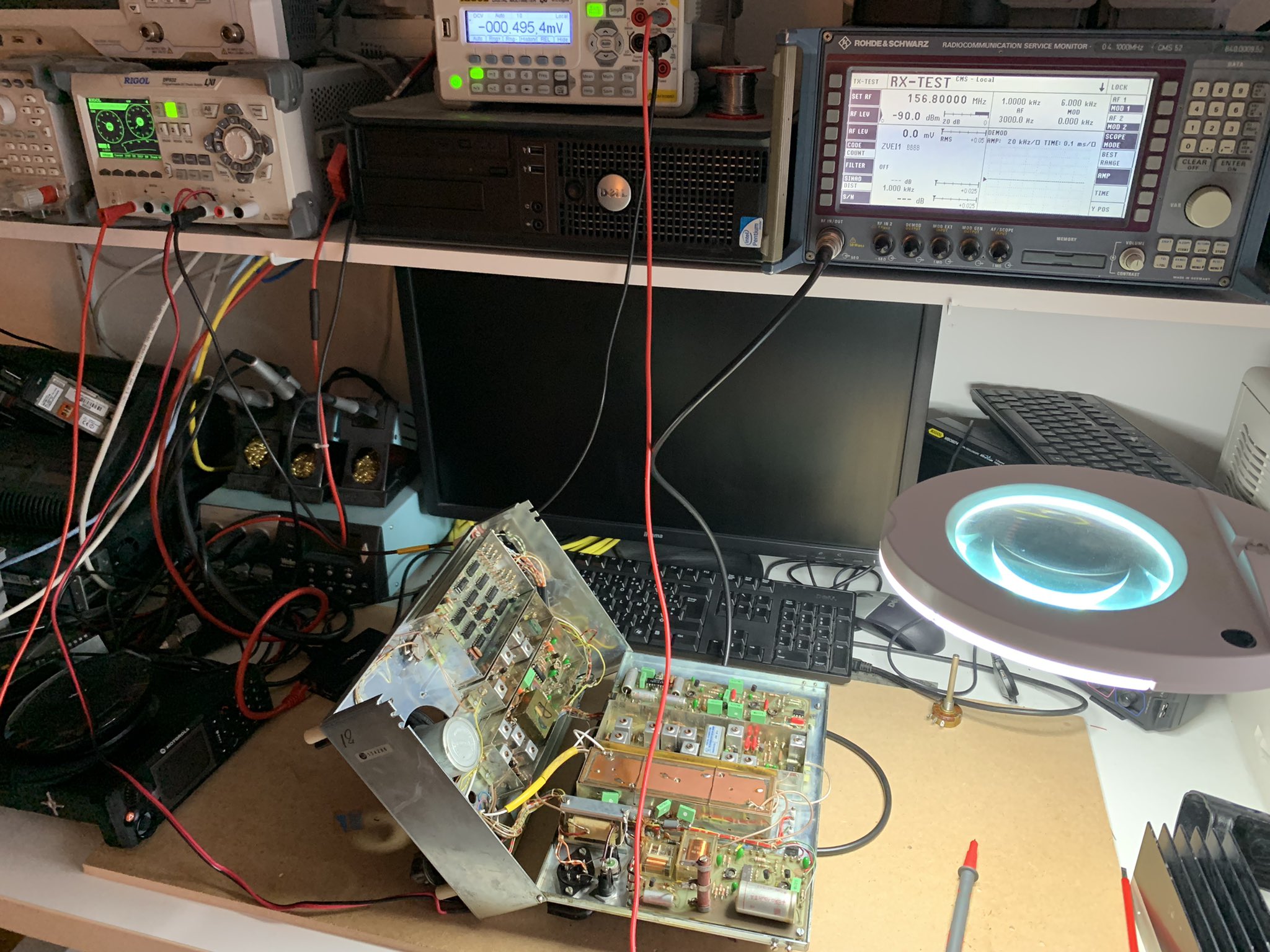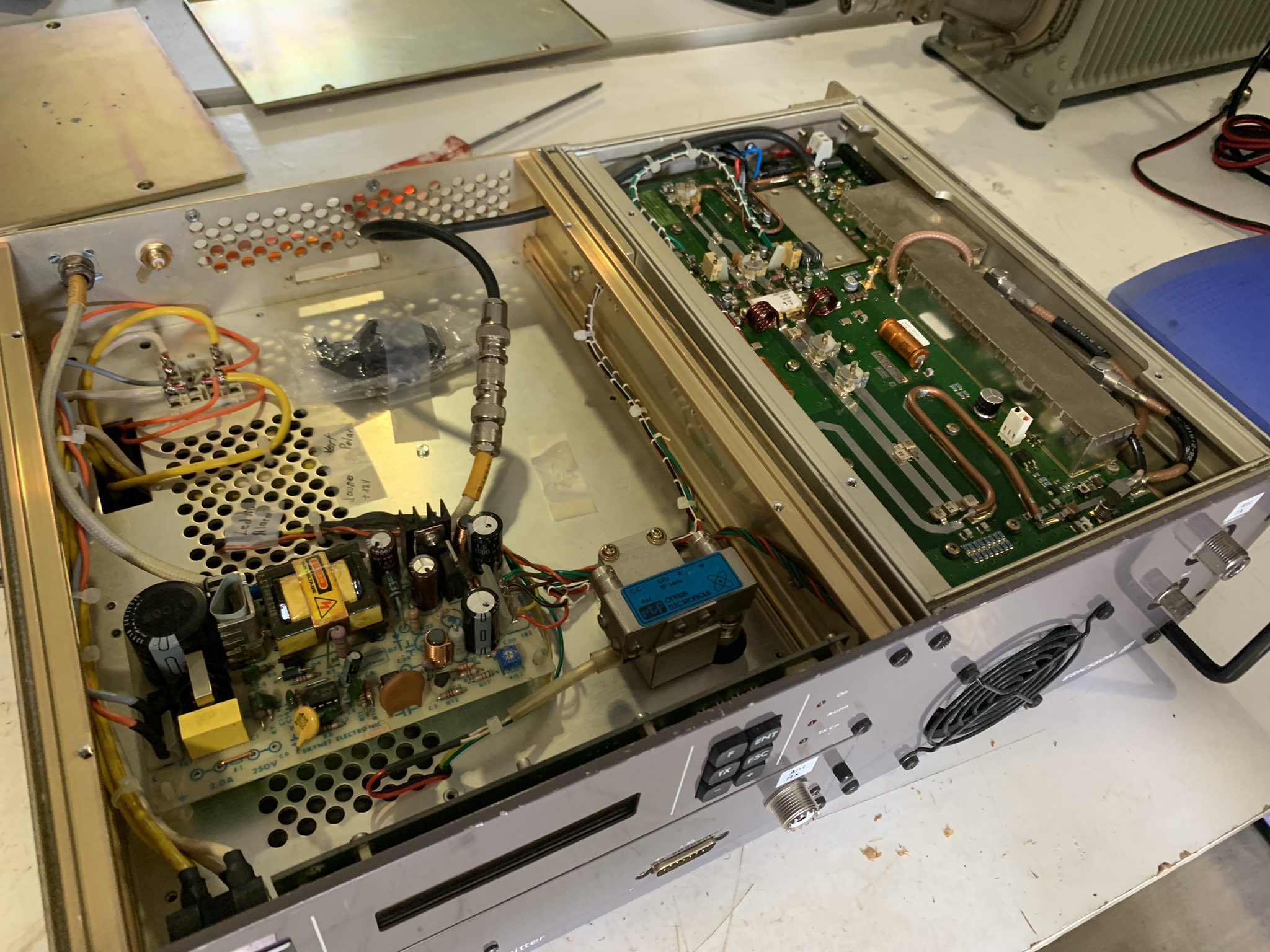 L’association voisine de la nôtre prépare au Permis Bateau. Nous leur avons proposé d’installer une antenne VHF Marine sur un bras de déport fixé à notre pylône. A moment de passer le câble dans le local « Permis bateau » et de le connecter à la station VHF Marine Sailor RT144 de la capitainerie (un appareil un peu collector : il date de 1974 !), nous nous apercevons que l’appareil qui n’avait pas servi depuis longtemps a un souci : le récepteur semble décalé de plusieurs MHz. Le dépannage a été aussitôt pris en charge par Pierre, Fifou (qui avait apporté son banc radio R&S CMS52) et Zidane. L’appareil est vite démonté et tout le monde s’affaire autour de la table d’opération en donnant son diagnostic…