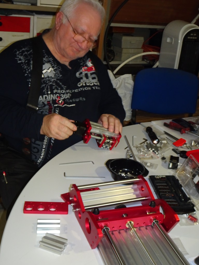 Pendant que Didier F4DFR et Andrea alignaient les contacts dans le log lors du CDF HB SSB (weekend des 22 et 23 février 2020), Richard et Patrick F4PII jouaient au Meccano et montaient les différentes pièces de la CNC que nous avons commandée au Père Noël et qui a été livrée récemment. Voici ce que cela donne une fois monté. Mais avant, il y a un peu de travail (et de réflexion) pour assembler toutes les pièces. Une présentation de la bête et de ce qu’elle peut réaliser est envisagé pour le prochain samedi technique…