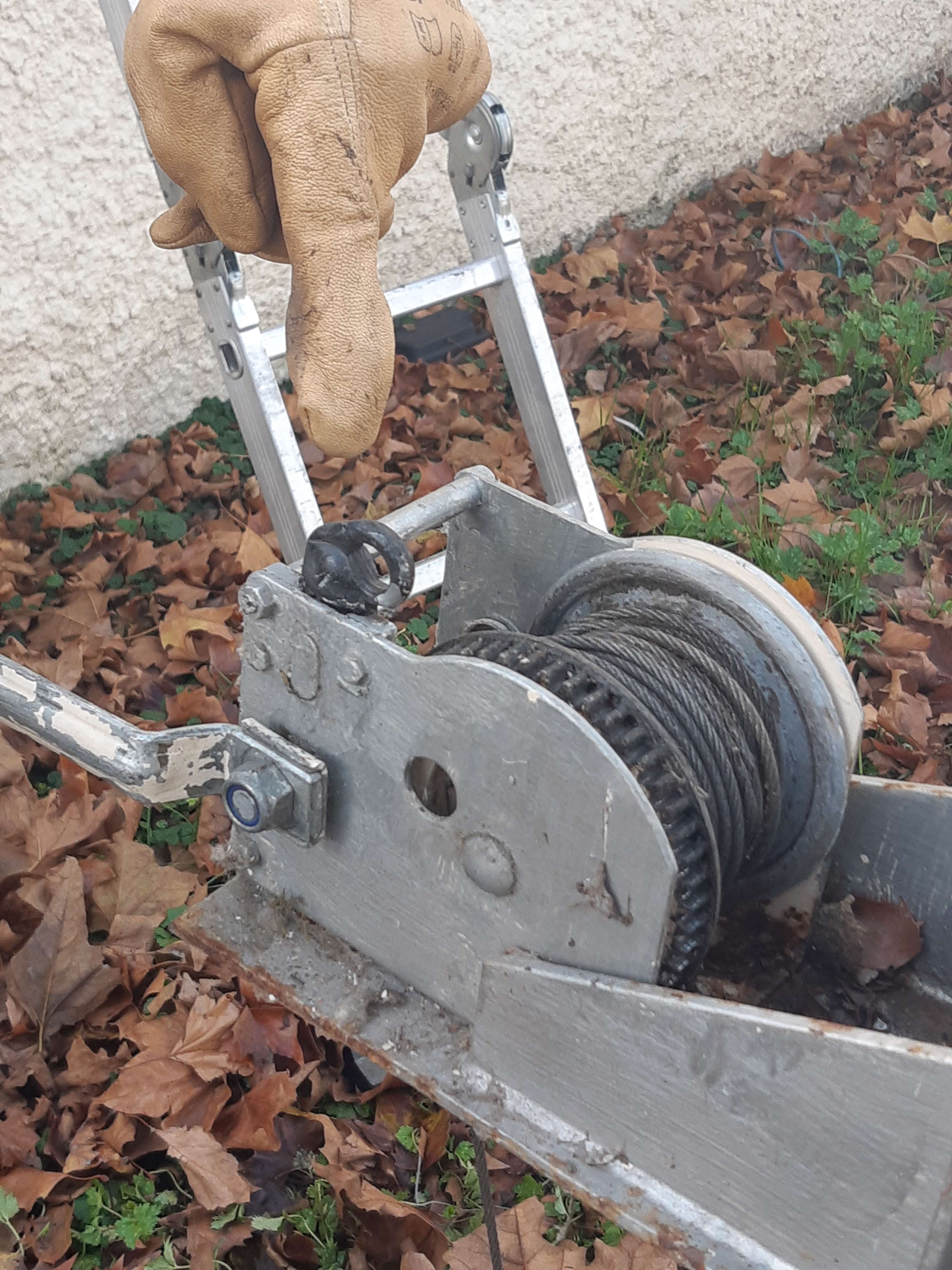 2) relever le frein du treuil pour pouvoir dérouler le câble