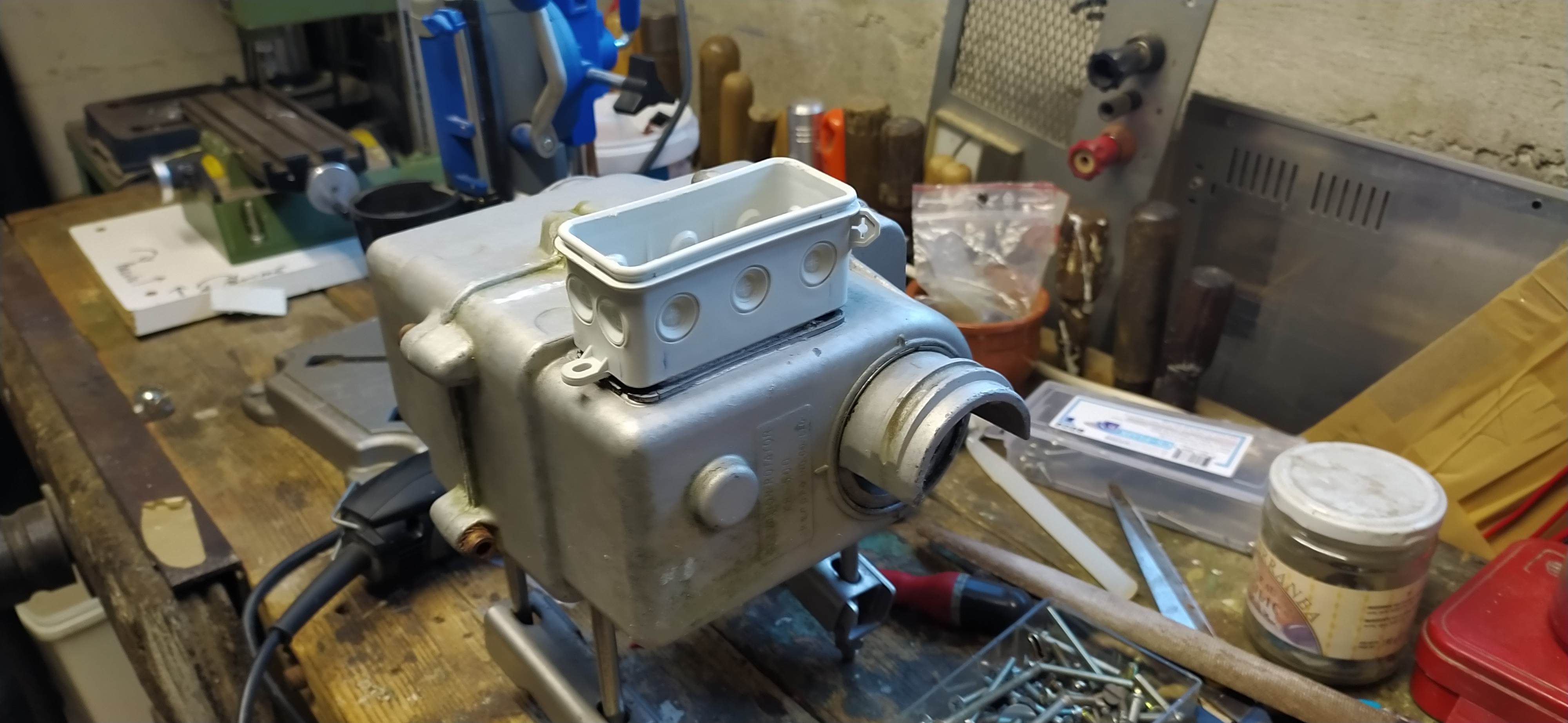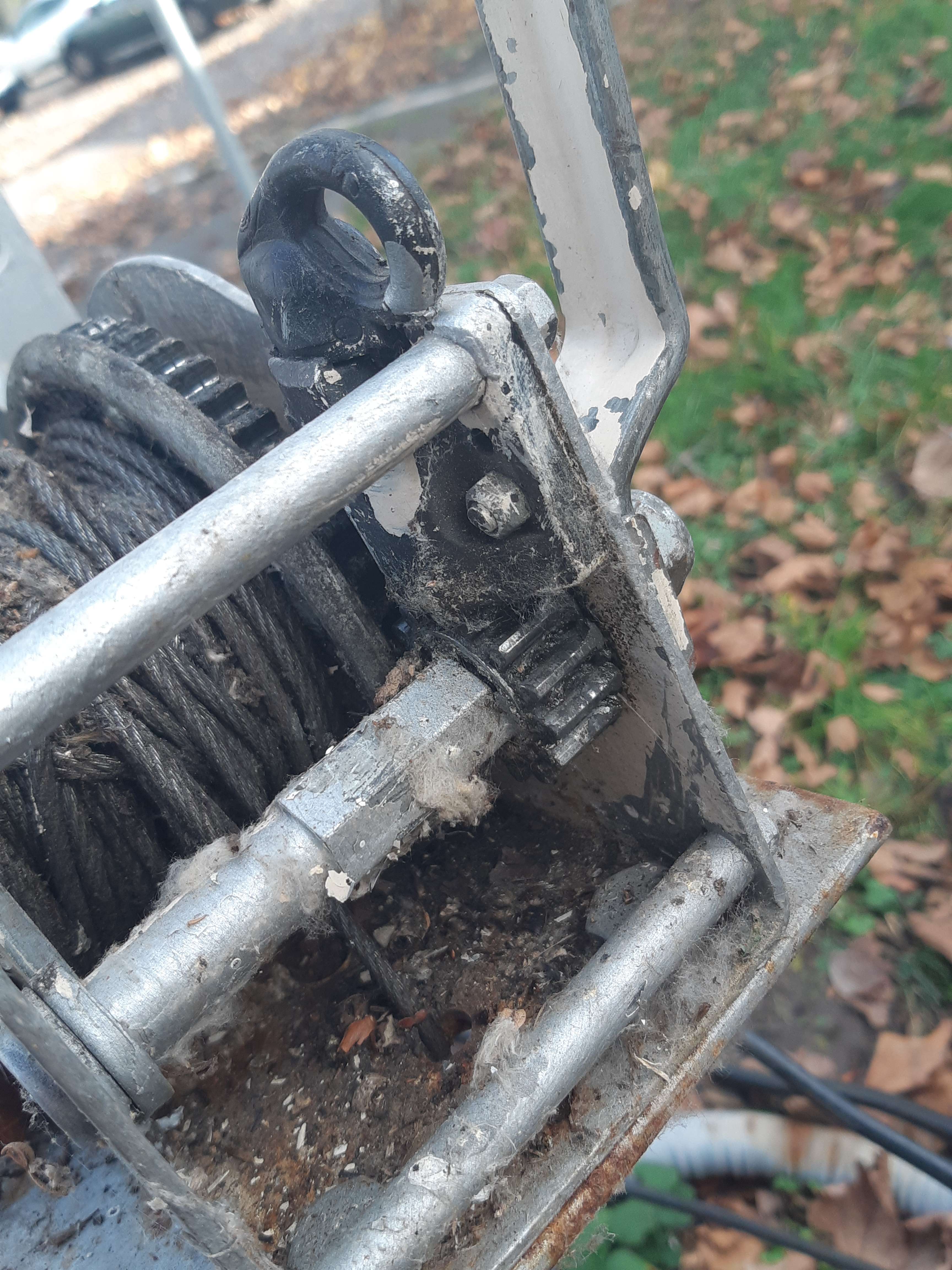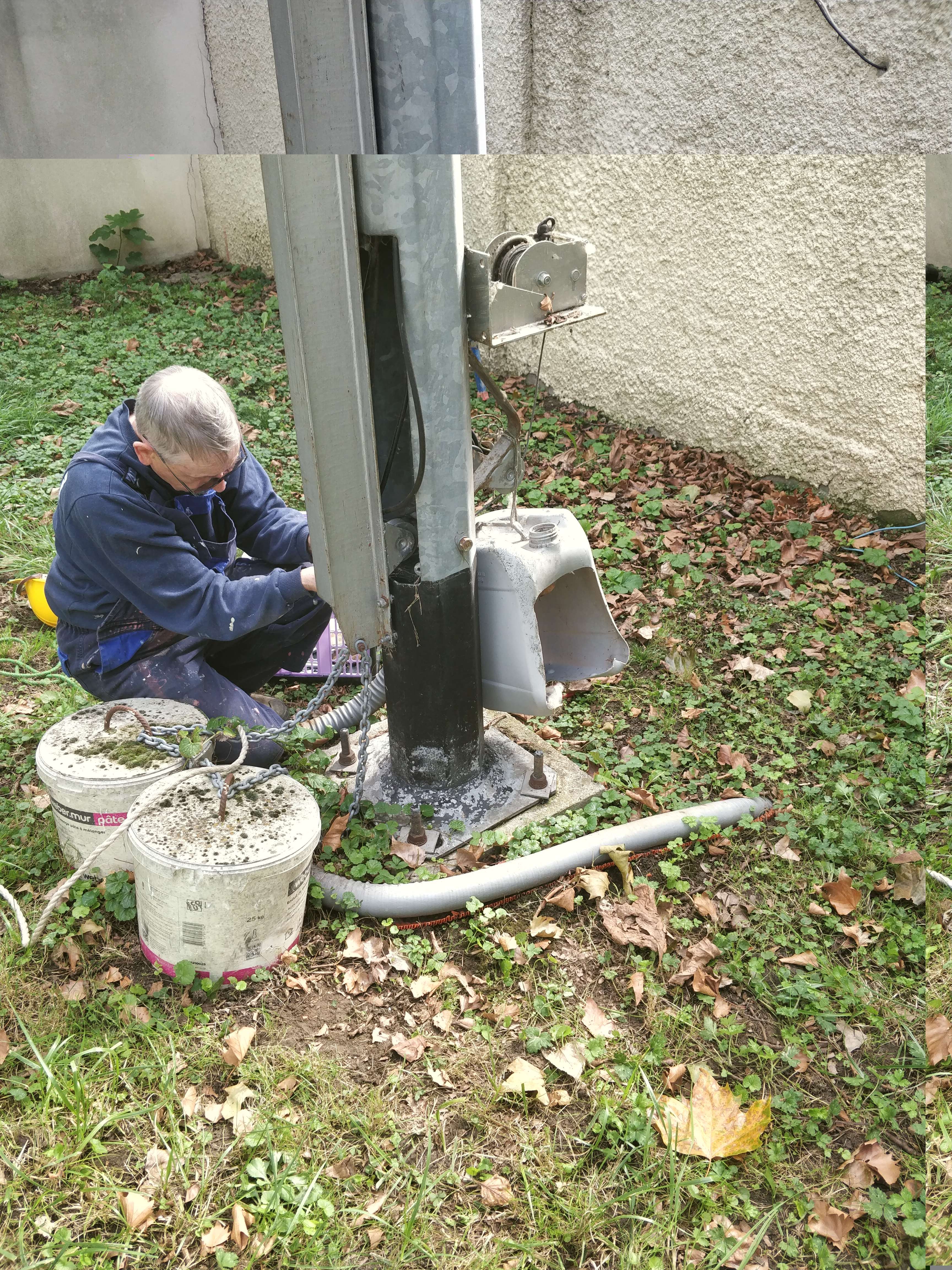 Puis, fin septembre, nous avons procédé au démontage des antennes et des rotors pour faire un point sur l’état du matériel. Une fois démontés et nettoyés (des oiseaux avaient commencé à faire leur nid dans le tube horizontal !), les deux rotors sont remontés sur banc d’essai dans notre local et nous constatons qu’ils sont parfaitement fonctionnels : une bonne nouvelle à plus de 1000 € qu’il aurait fallu débourser pour les remplacer ! Un peu de graisse a été nécessaire sur les parties mécaniques et nous avons changé un boitier de connexion, cassé par le temps et peut-être par les branches des arbres à proximité des antennes.