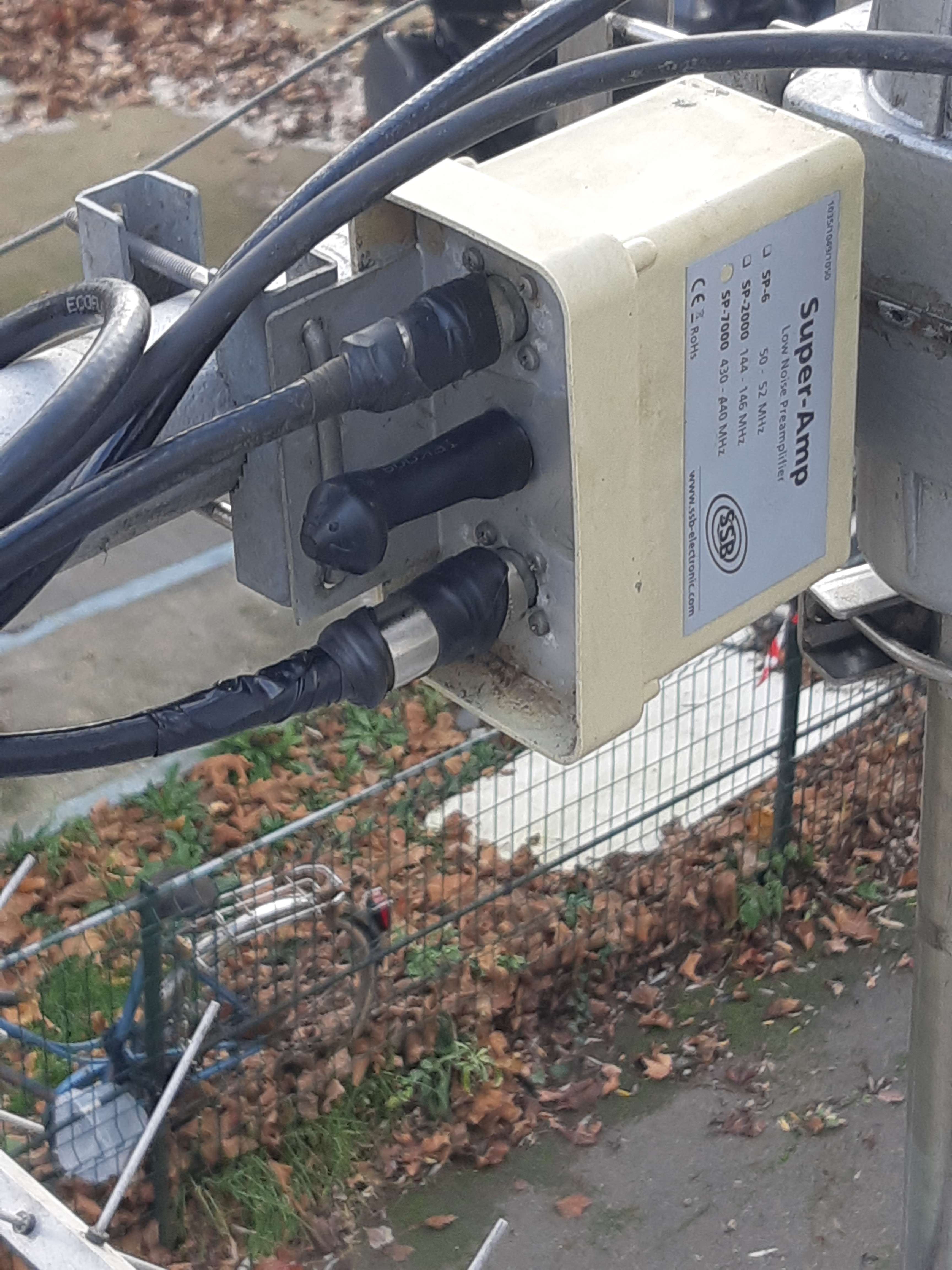 Le lundi 20 novembre, une dernière étape a permis de finaliser la remise en état des antennes : installation du préampli 430 MHz et protection à la « peau de chat » des prises coaxiales pour les rendre étanches.